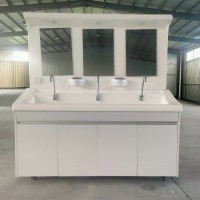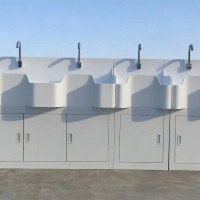 高分子洗手池材质特点:采用高分子材料一次吸塑成型,出水方式有:感应式、膝控式、脚踏式和手动开关,一台洗手池可客户要求选择单一出水方式或多种出水方式。洗手池分高背和低背,高背总高度1800mm,配有美容镜,照明灯,皂液器,可按客户要求配置烘手器和热水器。低背板无配置。