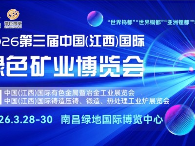 备受行业关注的2026第三届中国(江西)国际绿色矿业博览会将于2026年3月28日-30日,在南昌绿地国际博览中心正式举办。同期举办:中国(江西)国际有色金属暨冶金工业展览会,中国(江西)国际铸造压铸、锻造、热处理工业炉展览会。