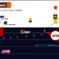 智能安全引导警示设备可有效防止事故的发生,是保障现场人员生命安全 的一道屏障;系统操作简单,在使用时,只需将防闯入警报器放在事故现场即可。 当驾驶人意外闯入警戒区,现场所有设备立即鸣叫报警,及时警示车辆已闯入事 故现场采取制动等措施。另外,所有现场工作人员随身携带的无线报警器立即鸣叫报警,提醒工作人员及时撤离躲避。